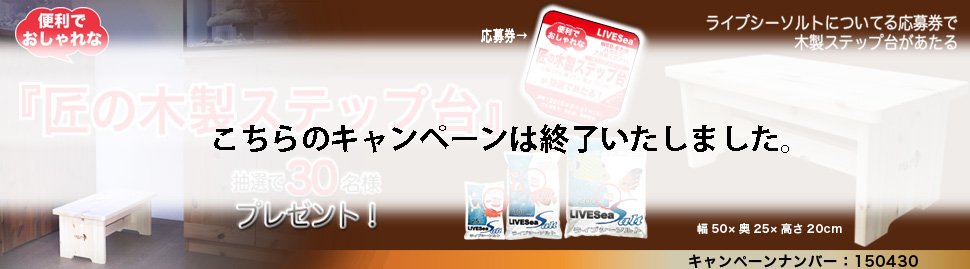■ホームページにて応募: ライブシーソルトの袋についている応募券に記載された8桁のシリアル番号を2pt(2枚)分を各々をキャンーペーン応募フォームに入力していただき、その他必要事項をご入力の上、送信してください。